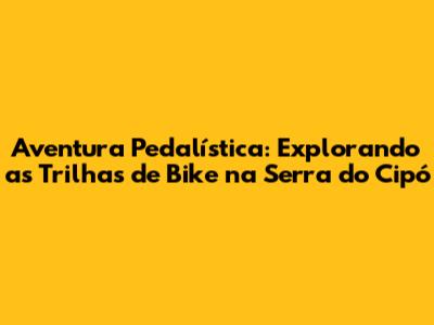 Aventura Pedalística: Explorando As Trilhas De Bike Na Serra Do Cipó