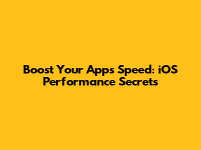Boost Your App's Speed: IOS Performance Secrets