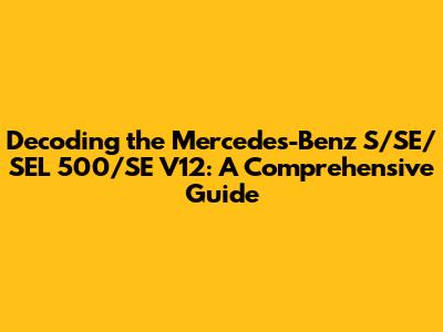Decoding The Mercedes-Benz S/SE/SEL 500/SE V12: A Comprehensive Guide