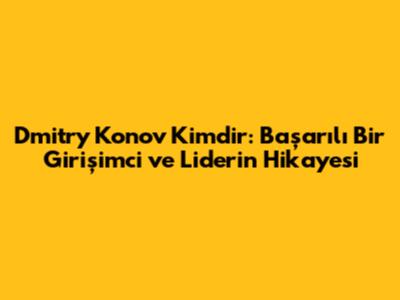 Dmitry Konov Kimdir: Başarılı Bir Girişimci ve Liderin Hikayesi