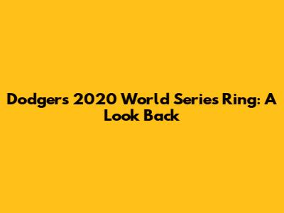Dodgers 2020 World Series Ring: A Look Back