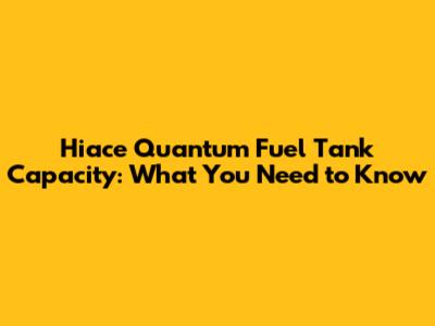 Hiace Quantum Fuel Tank Capacity: What You Need To Know