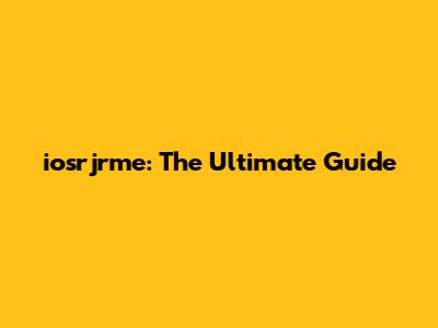 Iosrjrme: The Ultimate Guide