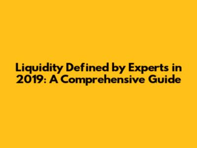 Liquidity Defined By Experts In 2019: A Comprehensive Guide