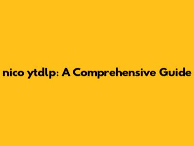 Nico Ytdlp: A Comprehensive Guide