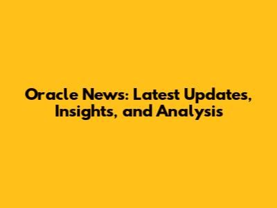 Oracle News: Latest Updates, Insights, And Analysis