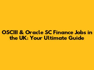 OSCIII & Oracle SC Finance Jobs In The UK: Your Ultimate Guide