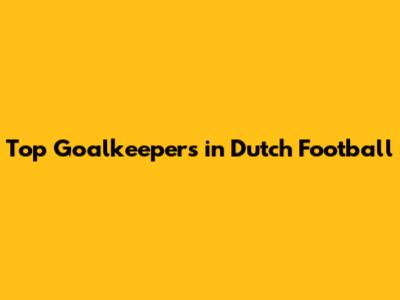 Top Goalkeepers In Dutch Football
