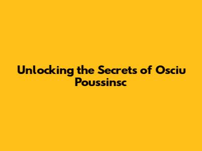 Unlocking The Secrets Of Osciu Poussinsc