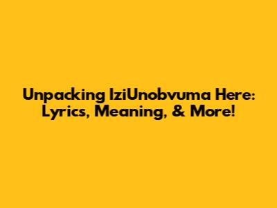 Unpacking IziUnobvuma Here: Lyrics, Meaning, & More!