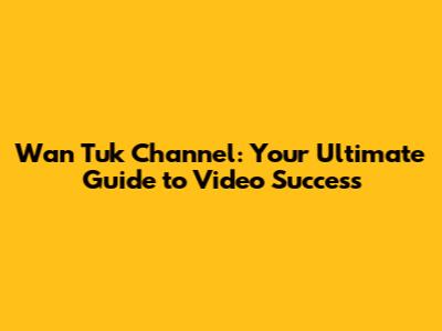 Wan Tuk Channel: Your Ultimate Guide To Video Success