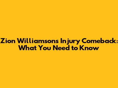 Zion Williamson's Injury Comeback: What You Need To Know
